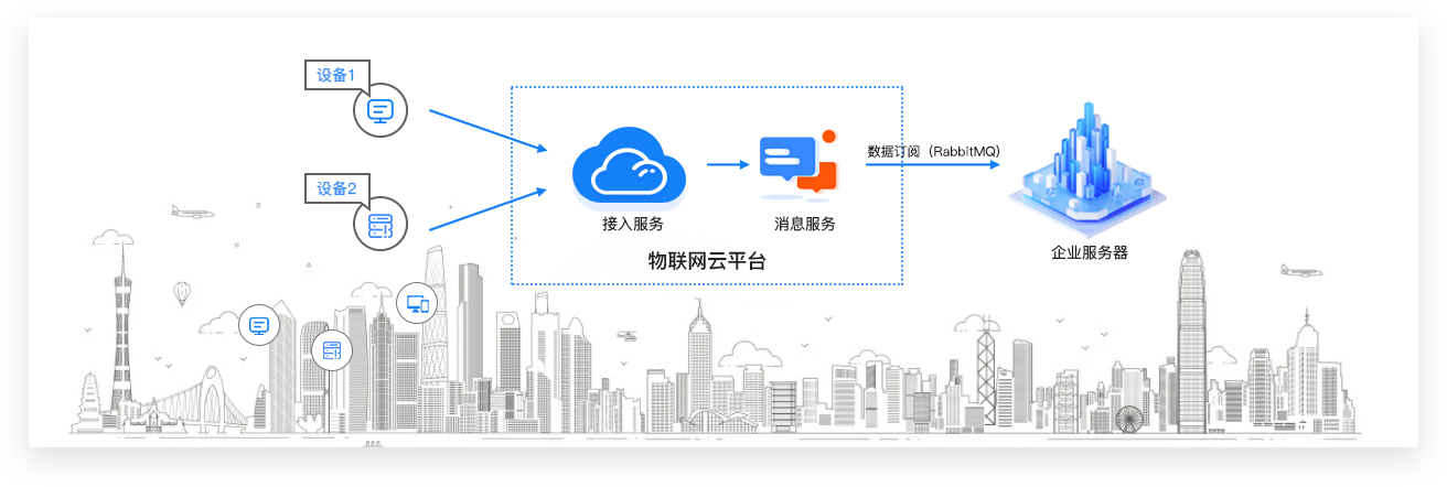 面向物联网个人开发者和设备运营商提供接入服务,支持海量设备连接上云、设备和云端双向消息通信、批量设备管理、远程控制和监控、OTA升级、消息订阅、消息转发和数据服务(存储、分析、过滤、解析、集成等)等能力, 使用具有交互式操作的Web服务页面,管理您的物联网平台资源,马上试用。