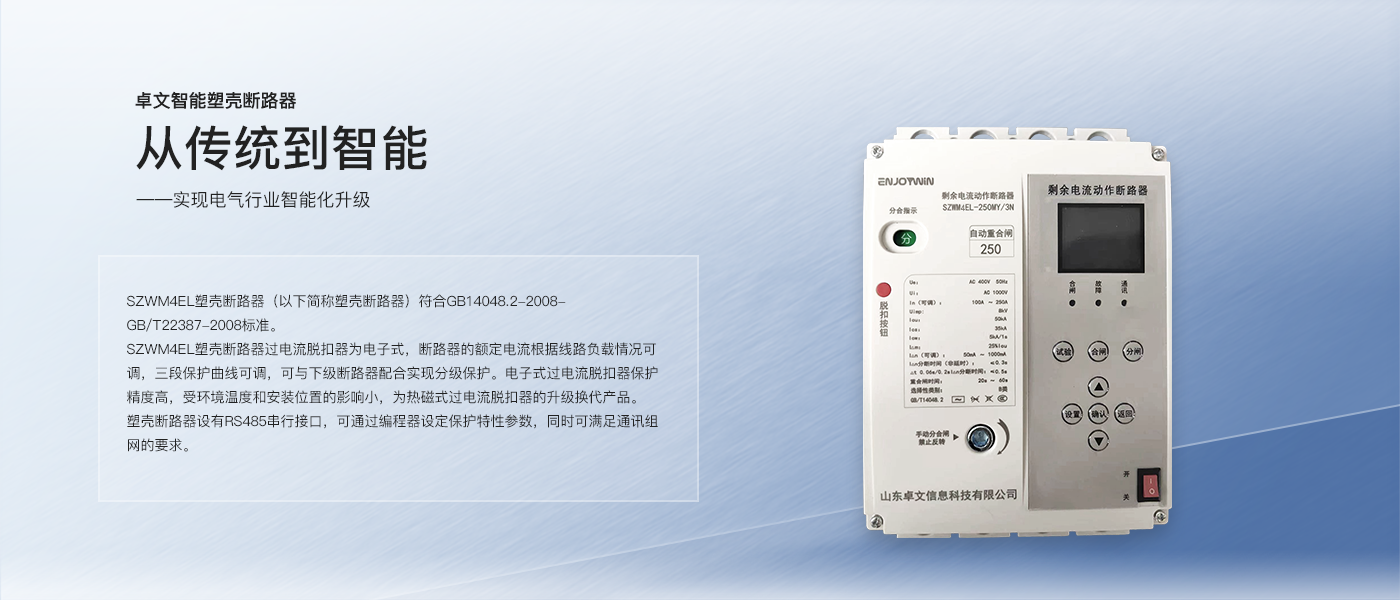 智慧塑壳断路器使用电管理更加智能化可以实时采集数据(如电压、电流、漏电流、有功功率、无功功率、功率因数、温度、电量等各种用电信息)。