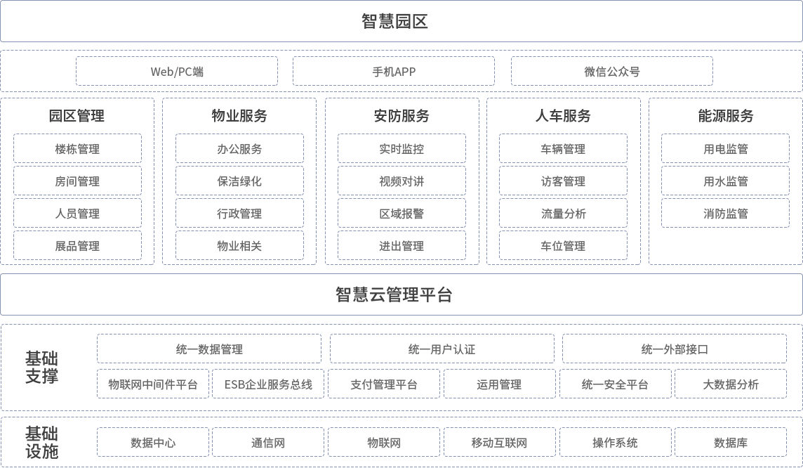 适用于智能园区、工业园区、办公园区的管理、运维、集中管理分散控制、系统联动、优化运行